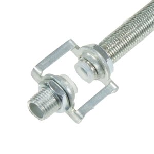 Once you have the length cut the rod to length, take a steel nut and screw it onto the end then place a tube grommet in the end of the rod and screw the hickey onto the rod.