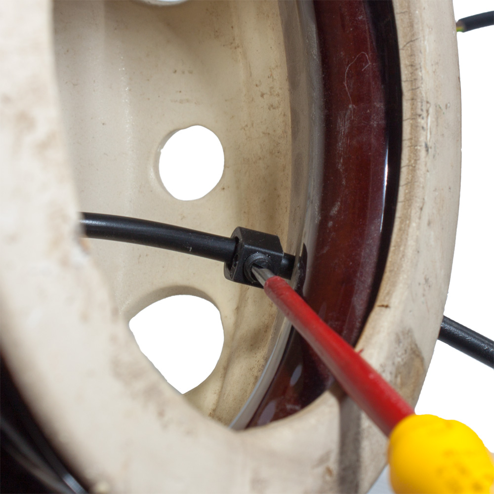 After the wiring has been completed you will need to install a cord grip (strain relief) onto the cable.