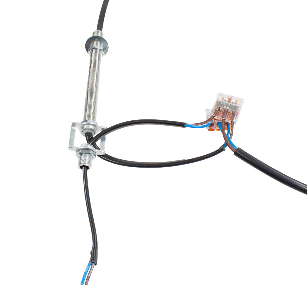 For this option i used 2 core flat cable as it fits into the thread rod well, no need for a earthed solution as long as the inner cores (blue, brown) are NOT inside the threaded rod.