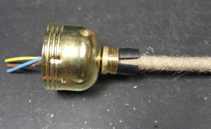 Now take the threaded part of the cord grip and thread it onto the lampholder, if you look on the inside of the lampholder there is a small grub screw, once the cord grip is screwed in you must do this small screw up, that stops the cord grip from twisting away from lampholder.