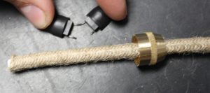 Slide the outer cover onto cable NOTE: be careful as the thread on the inside will pull the fibres on the fabric cable, just go slow.