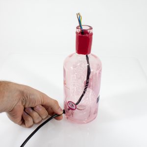 You want to be able to see a little bit of the outer PVC of the cable sticking out the top of the bottle.