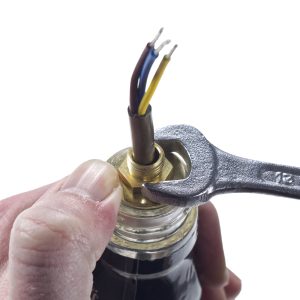 Once this is done you can pull the cable back, so the cord grip stops and sits inside the bottle behind the grommet as shown in last image.