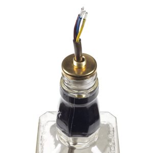 You want to be able to see a little bit of the outer PVC of the cable sticking out the top of the bottle.
