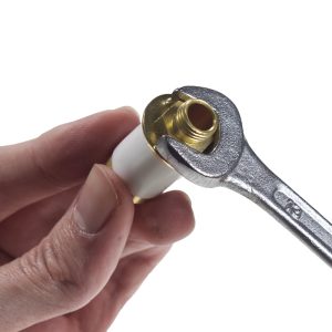 Take the nut cover and place it over the bung to hide the brass parts of the bung.