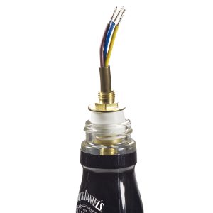 Take your drilled bottle and insert the grommet, please ensure to take care and not to apply too much force, especially with Jack Daniel's bottles as they will crack.