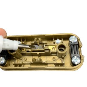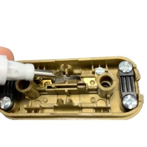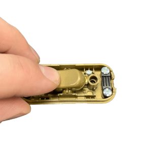 Note: it won't sit flat completely as it will be in the on or off position, you MUST make sure the bobble on the metal piece is on the left or the opposite side to the raised brass tab on the switch.
