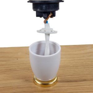 The first step is to replace your existing cable with the new one supplied with the kit, this should be as simple as pulling the old wire out and feeding the new wire in from the bottom of the lamp.