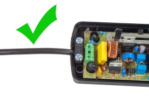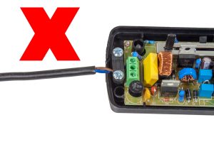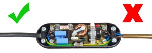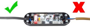 As you can see the left hand side is correct as the outer PVC jacket is sitting under the cord grip.