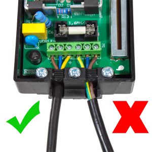 After wiring you will need to clamp the cable into position - clamps and screws are in the small bag of bits.